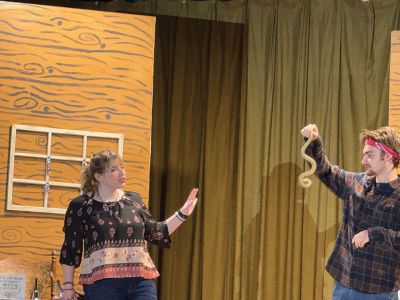 The final performance of Old Colony Theater Company’s showing of Andrew Ross’ North Woods Nonsense. The play ran this past weekend at Old Colony Vocational High School and filled the room with many laughs throughout. Photo by Sam Bishop.