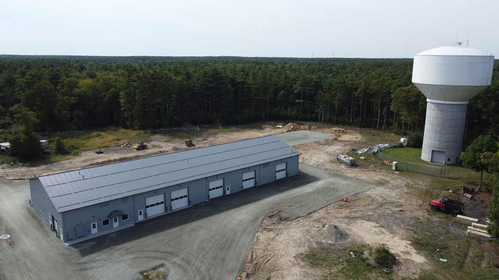 Marion’s new Department of Public Works (DPW) facility is coming along and seems almost complete from the outside. Many felled trees can also be spotted.