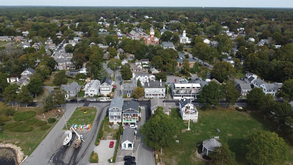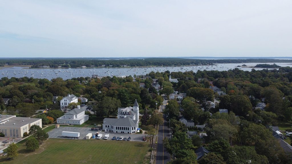 Most of the town center from above Town Wharf. Center School stands out with its clock tower’s height.