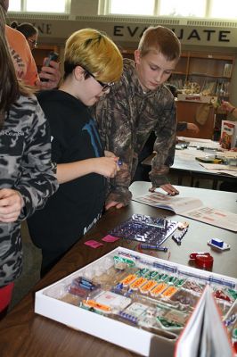 Rochester Memorial School hosted a STEAM night (Science, Technology, Engineering, Arts, Mathematics) on Thursday, March 30, in the RMS library. Students and parents enjoyed various hands-on stations featuring materials such as wooden sticks, clips, and plastic straws for engineering and building, as well as technology stations using “ozobots” to explore robotics. Photos by Jean Perry