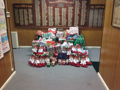 Through the efforts of the workers of both Marion and Mattapoisett town halls and Fall River Surgi Center a huge holiday offering was made by donating thee gifts to the Harbour House Family Center. Photo courtesy of Scott C. Shippey